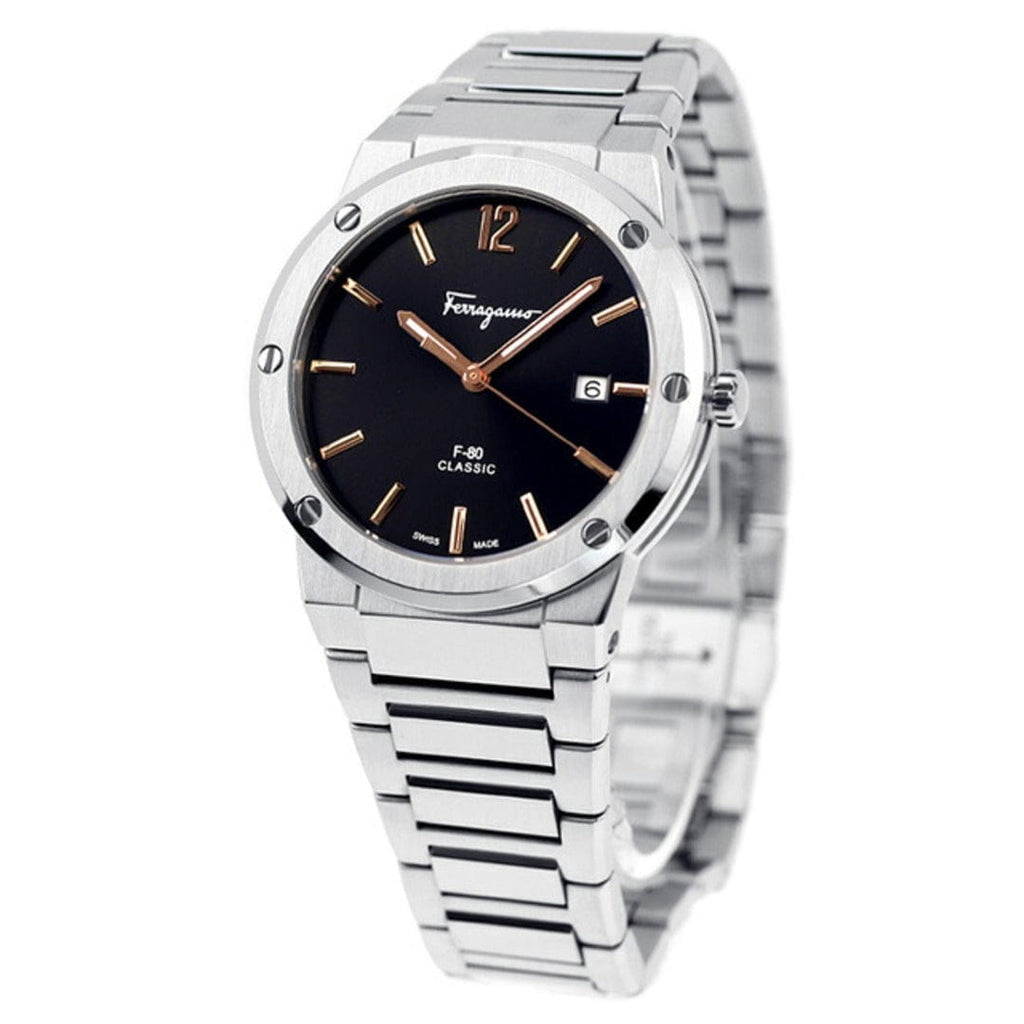 Salvatore Ferragamo F-80 Classic Black Dial Silver Steel Strap Watch for Men - SFDT02423