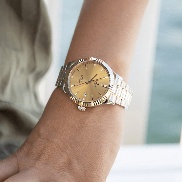 - Bracelet Material: Stainless Steel and Yellow Gold