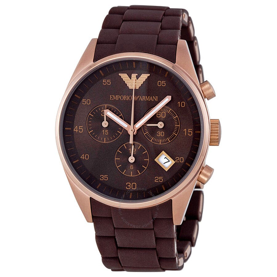 Emporio Armani Sportivo Chronograph Brown Dial Brown Silicone Strap Watch For Men - AR5891