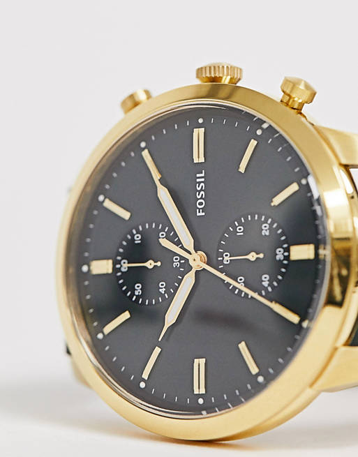Fossil Townsman Chronograph Green Dial Green Leather Strap Watch for Men - FS5599