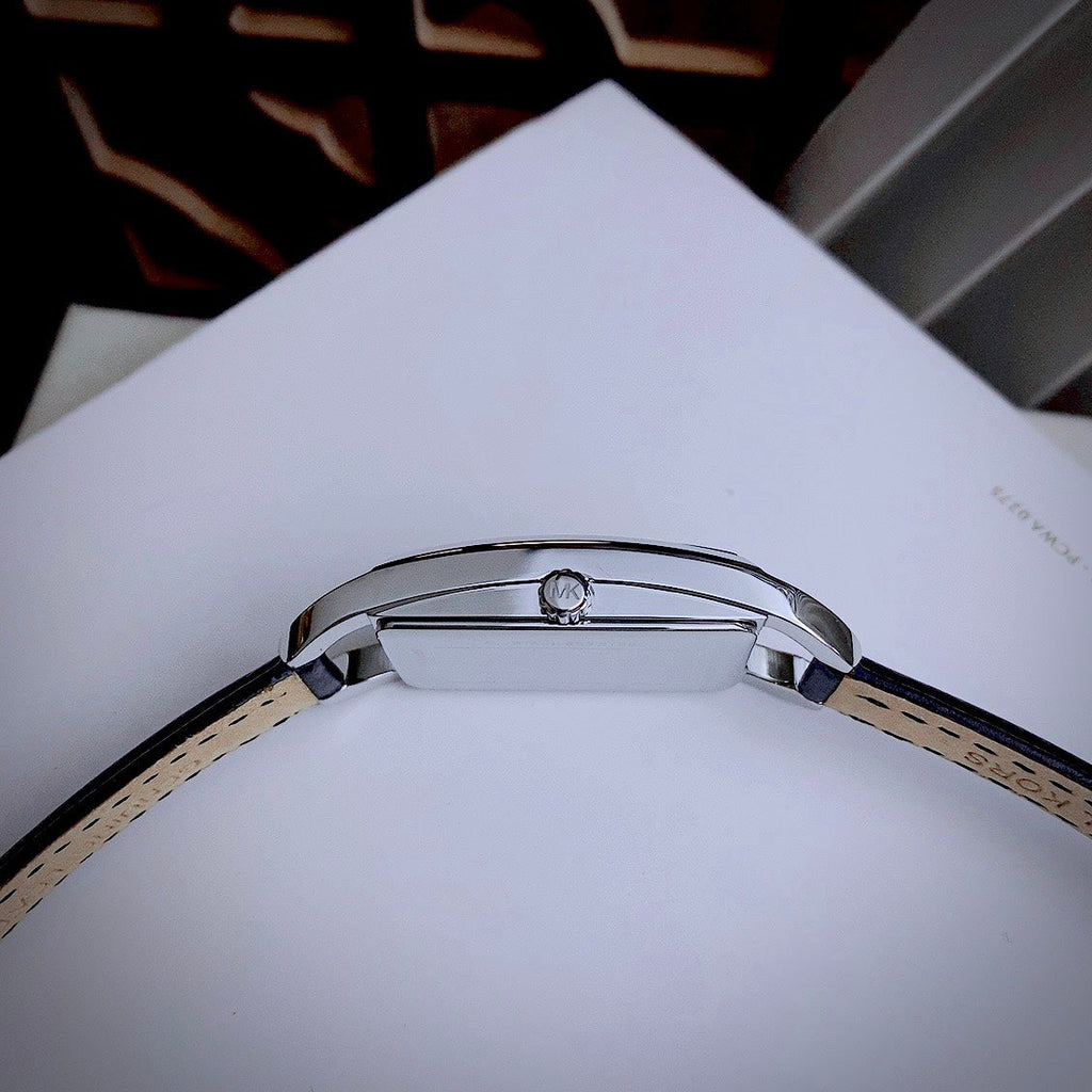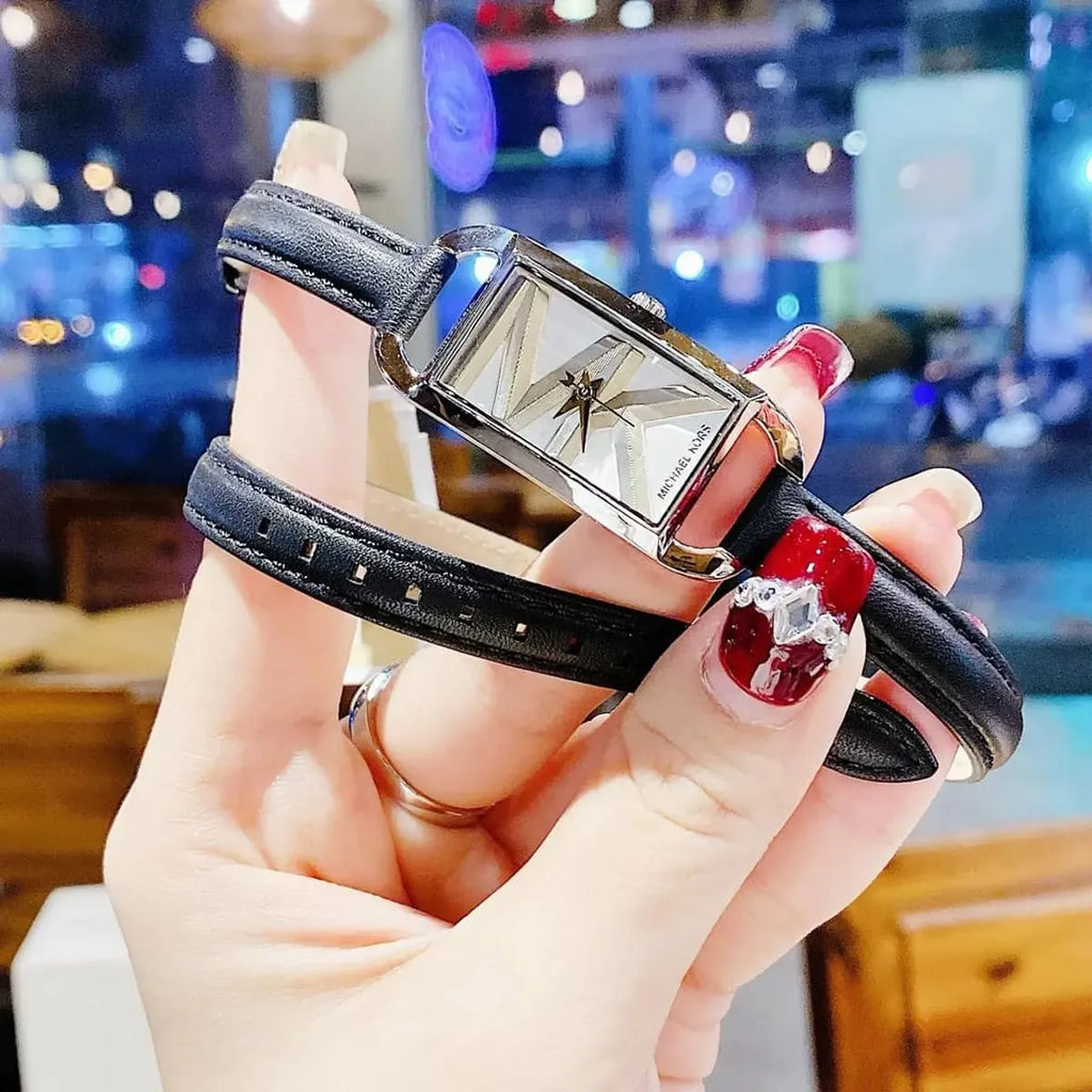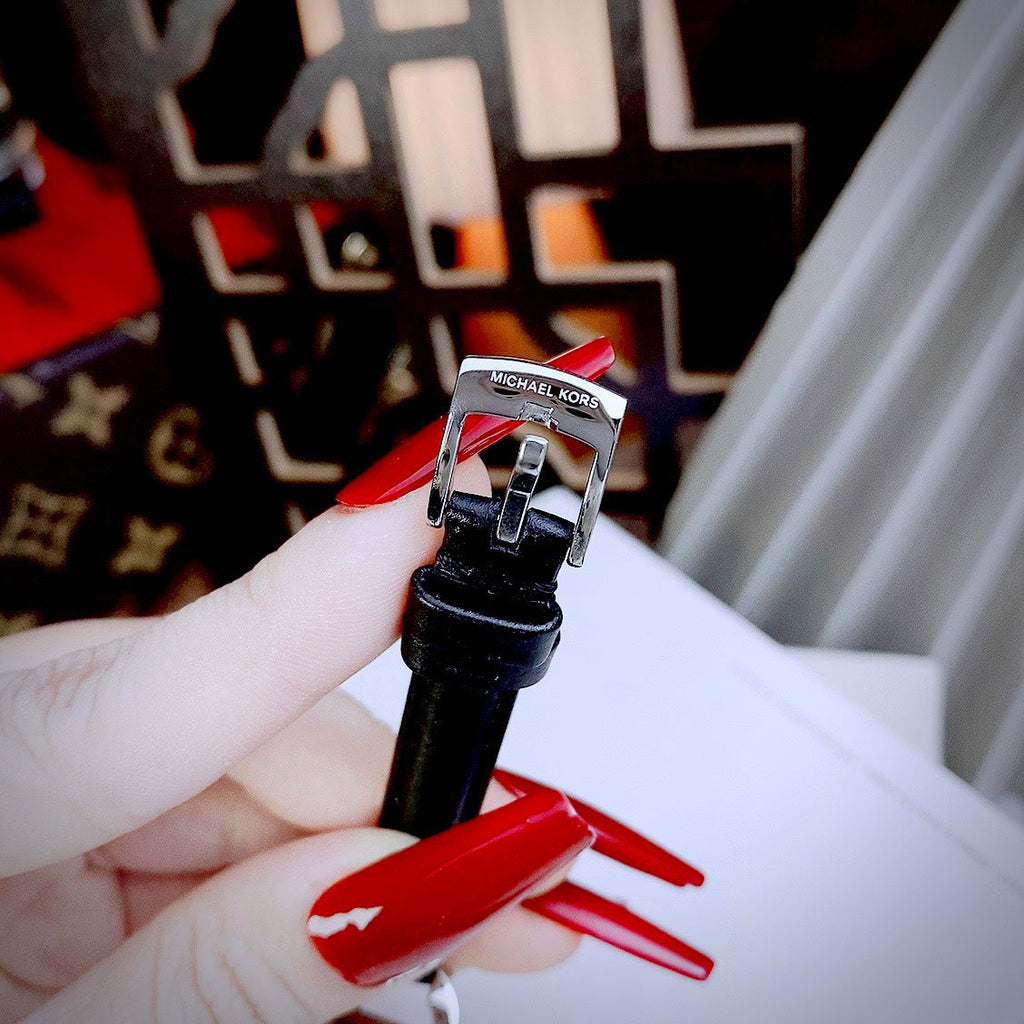 Michael Kors Empire Three-Hand Silver Dial Black Leather Strap Watch For Women - MK4722