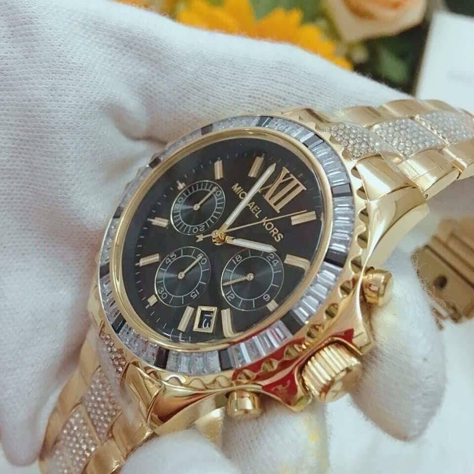 Michael Kors Everest Chronograph Black Dial Gold Steel Strap Watch For Women - MK5828