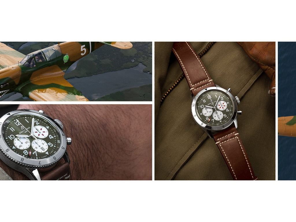 From brave first takeoffs to the birth of commercial air travel, Breitling’s history is inseparable from that of flight. In the 1930s, Breitling’s Huit Aviation department made its name inventing precision cockpit clocks. Two decades later, it introduced yet another novel flight instrument, this time in wearable form: the Ref. 765 AVI. That pioneering pilot’s watch provided the technical backdrop for today’s Super AVI, a collection inspired by the rugged spirit of famed early aircraft. The Super AVI Curtiss P-40 Warhawk honors one of those legends. Conceived as a pursuit aircraft, the Curtiss P-40 Warhawk first flew in 1938 and quickly proved itself as a master of agility.