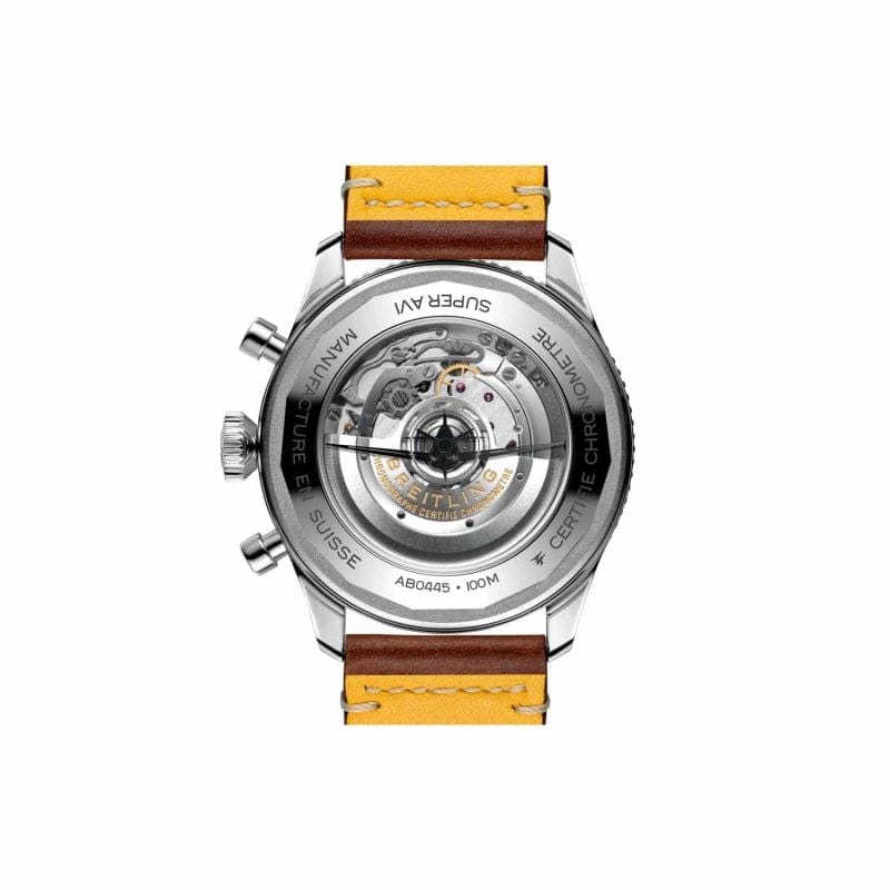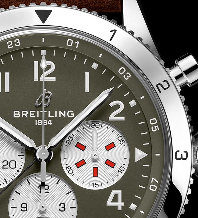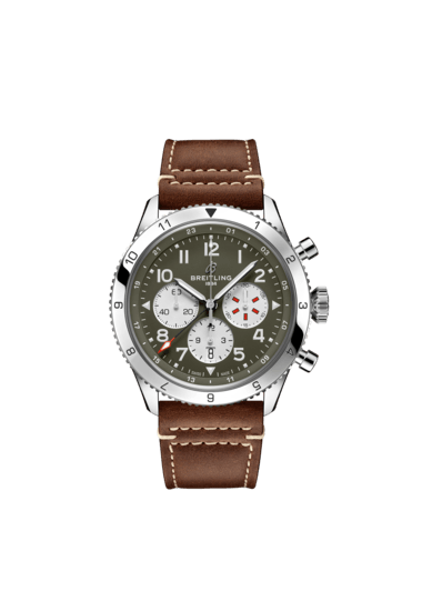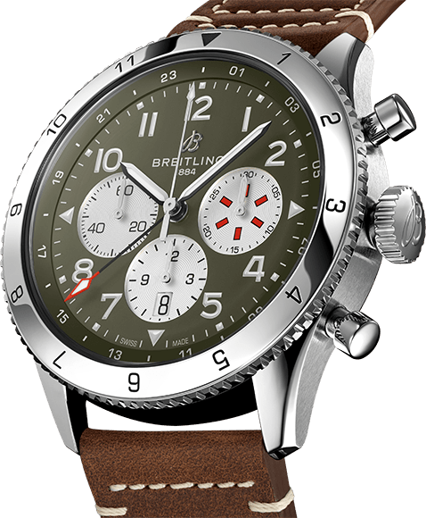 It wasn’t just the plane’s capacity for pulling jaw-dropping turns that gave it an in-flight edge, its robust structure meant it could tolerate harsh weather conditions and even many mid-air collisions. The Warhawk’s defiant shark-mouth nose art sealed its reputation as the rebel of the skies. As a true pilot’s watch designed to withstand the rigors of a vintage cockpit, the Super AVI Curtiss P-40 Warhawk features large, highly legible Arabic numerals on the dial and bezel. The oversized crown and knurled bezel on its sturdy 46mm case provide optimal grip, even in a pilot’s gloved hands. Top-stitched calfskin straps give a nod to the seams found on classic flight gear, while the optional stainless-steel bracelet provides an elegant alternative. Pilots and other travelers will appreciate the ability to track a second time zone using the 24-hour marking on the inner bezel and the red-tipped GMT hand. The engine of the Super AVI is the COSC-certified Breitling Manufacture Caliber B04 movement, which provides approximately 70-hours of power reserve.