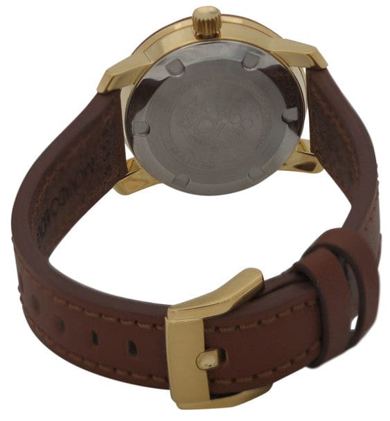 Movado Bold Gold Dial Brown Leather Strap Watch for Women - 3600437