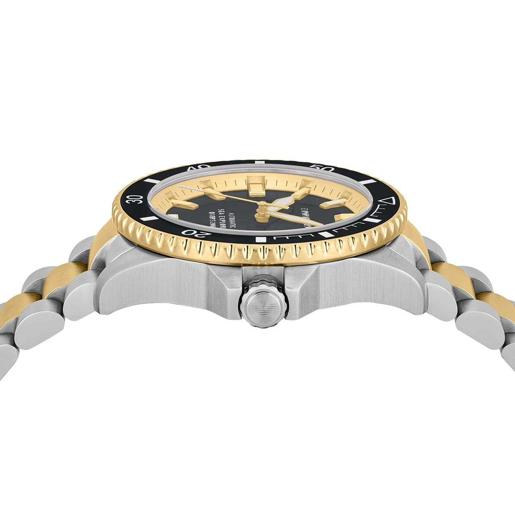 Emporio Armani Sea Explorer Black Dial Two Tone Steel Strap Watch for Men - AR60089