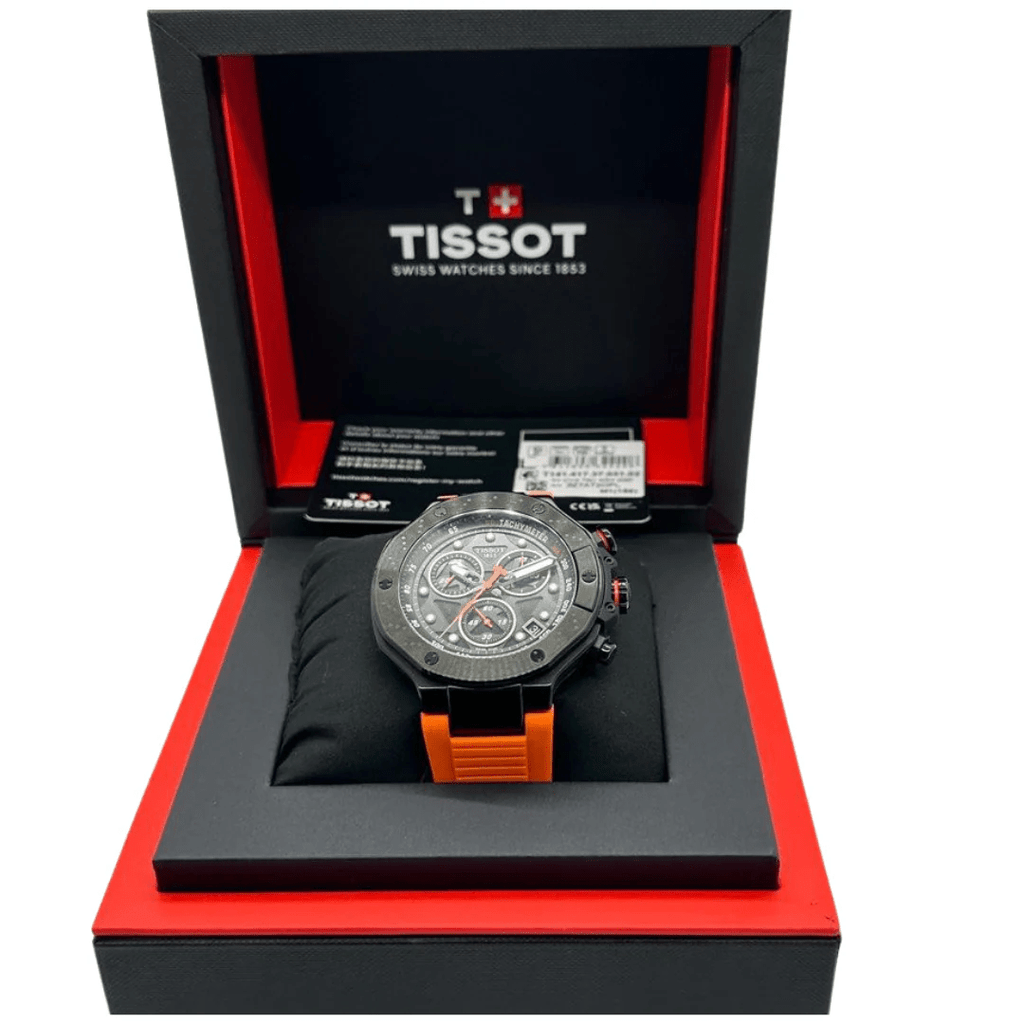 Tissot T Race Chronograph Black Dial Orange Rubber Strap Watch for Men - T141.417.37.051.02