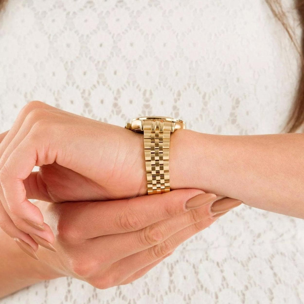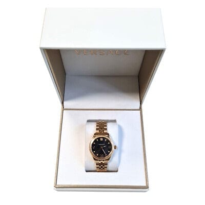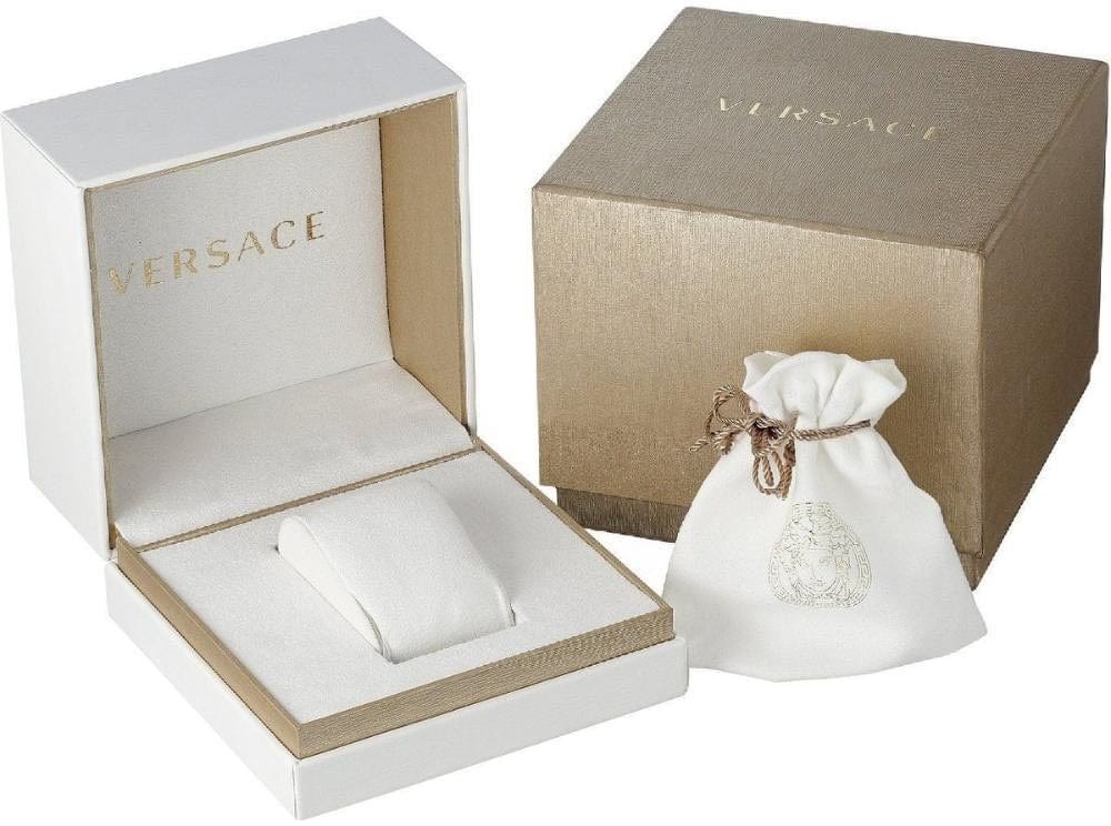 From Versace, this timeless 36mm case body is enriched with a sleek dial and 3 Roman numerals at 3H, 6H and 9H while the fierce Medusa head stands at 12H. The Greca decorates several elements such as the inner dial, the top ring and the metal loop giving a very fashionable allure.