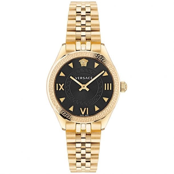 Versace Hellenyium Quartz Black Dial Gold Steel Strap Watch for Women - VE2S00622