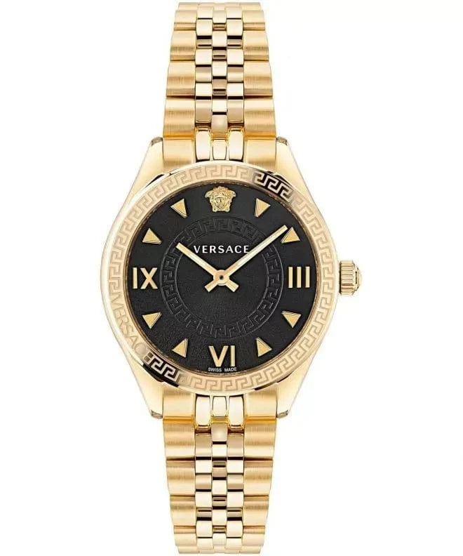 Elevate your style with the Versace Hellenyium Quartz watch, designed for women who appreciate luxury and precision. Featuring a striking black dial paired with a gold steel strap, this timepiece effortlessly blends elegance with durability. The quartz movement ensures reliable accuracy, while the iconic Versace design adds a touch of sophistication to any outfit. Perfect for both everyday wear and special occasions, this watch is a timeless accessory that makes a confident statement.