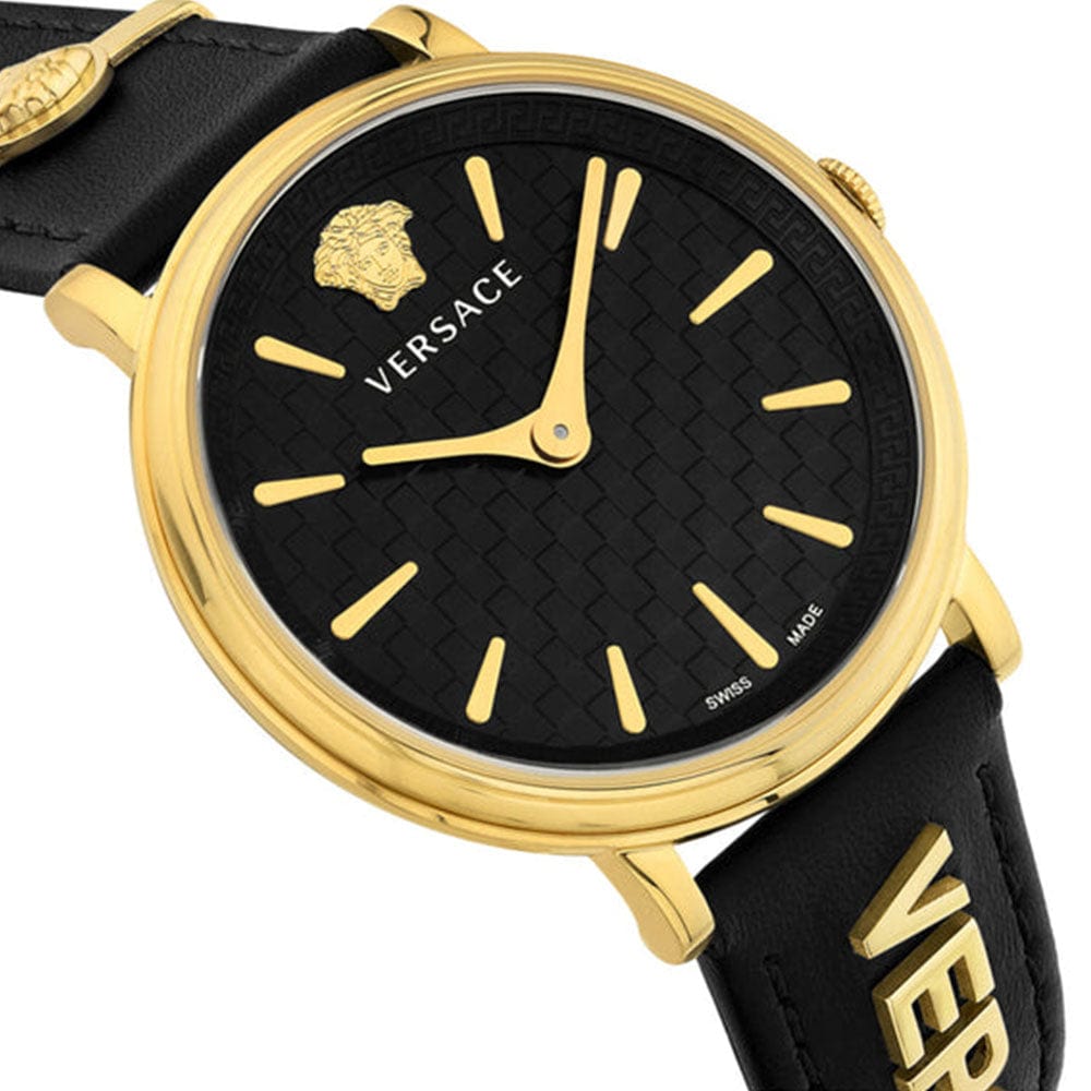 Elevate your style with the Versace V Circulus watch, designed for women who appreciate timeless elegance. Featuring a sleek black dial paired with a black leather strap, this quartz timepiece combines sophistication with reliable precision. Its refined design enhances any outfit, making it perfect for both everyday wear and special occasions. Experience luxury and craftsmanship in one stunning accessory.