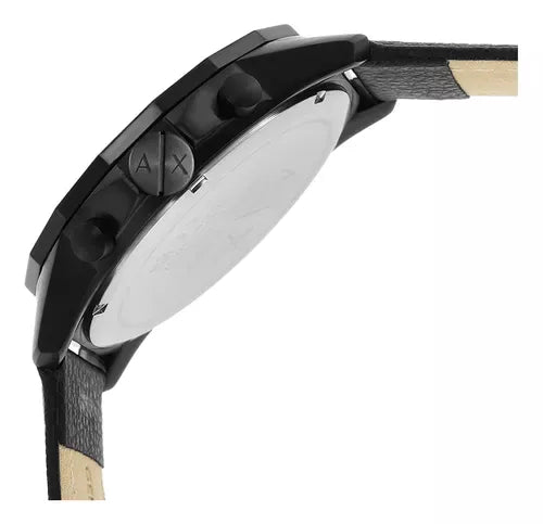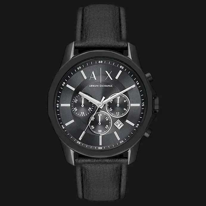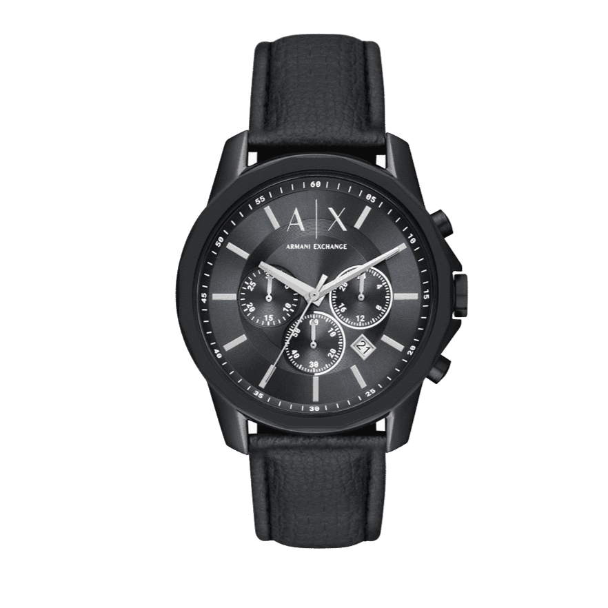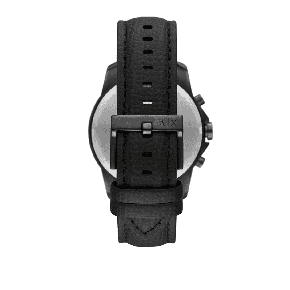 Elevate your style with the Armani Exchange Banks Chronograph Watch for men. The sleek black design, complete with a leather strap and black dial, exudes sophistication. With chronograph functionality, this watch is both stylish and functional, perfect for any occasion. Stay on time and on trend with AX1724!