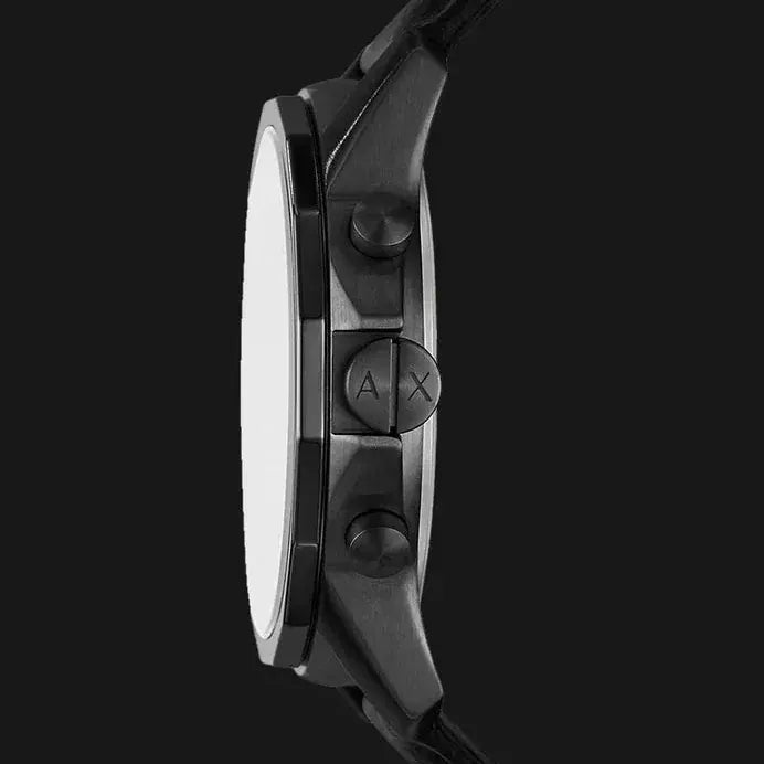 Armani Exchange Banks Chronograph Black Dial Black Leather Strap Watch For Men - AX1724
