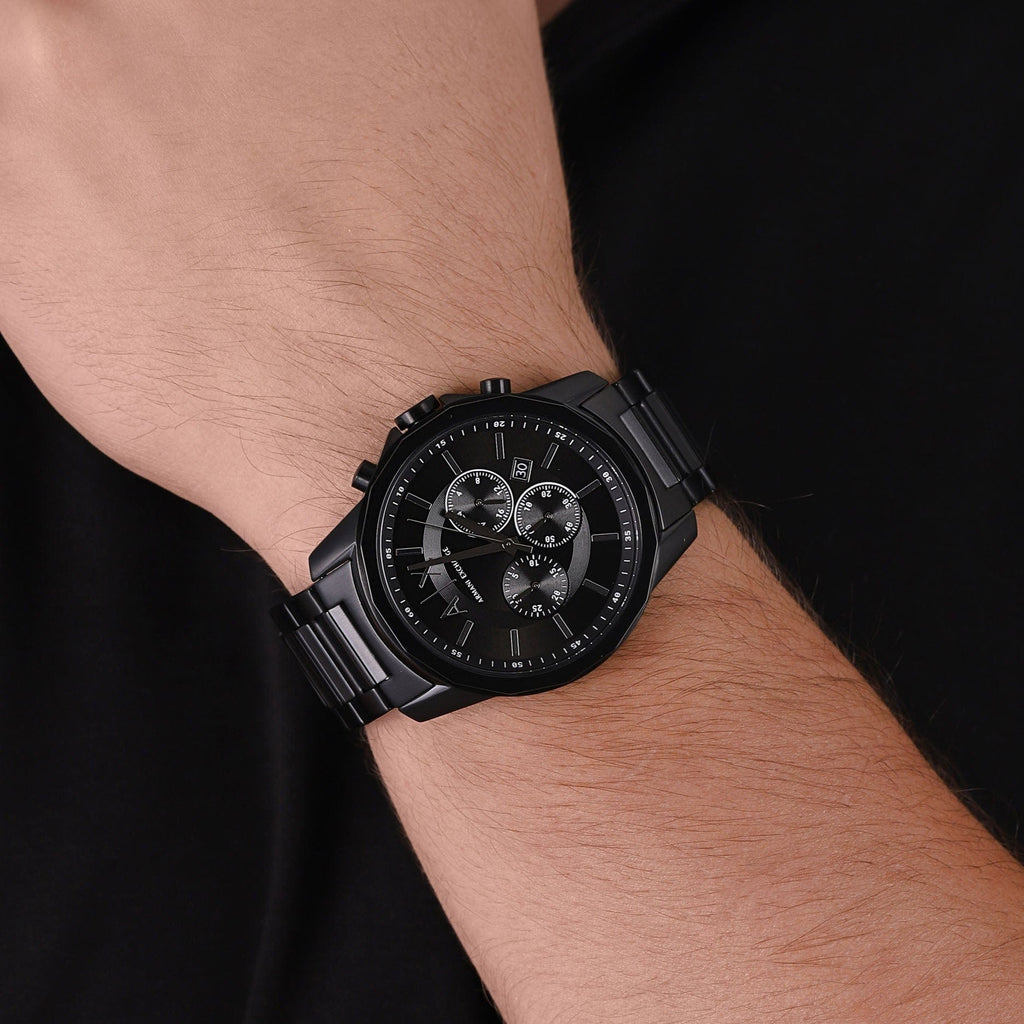 Armani Exchange Banks Chronograph Black Dial Black Steel Strap Watch For Men - AX1722