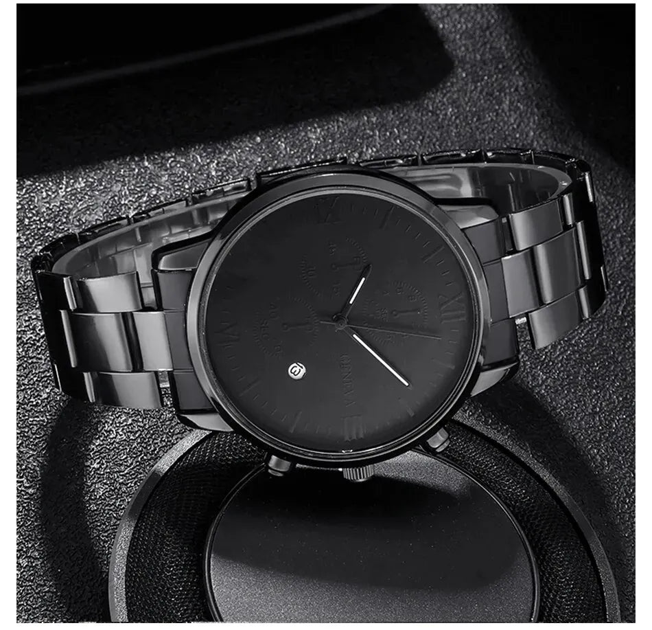 Giving you a tough yet refined look, mastering the balance of vintage inspiration with modern design, this timepiece represents the minimalistic aesthetic from its black carbon coated face to its slimmed-down case, which sits effortlessly against the wrist. Its refined construction, like its elegantly vaulted lume hands, black sunray dial, black bezel and black Y-link bracelet. The Cayde watch stand out of the crowd.