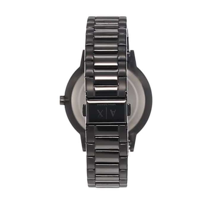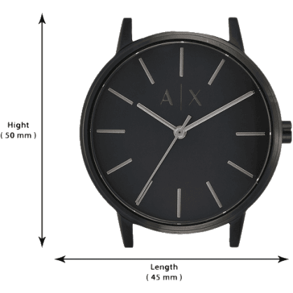 Bold and masculine, this Armani Exchange watch embodies modern minimalism. The all-black stainless steel case and bracelet exude a sleek, industrial vibe. With its 42mm round case, three-hand analog display, and scratch-resistant mineral crystal, it's both stylish and practical for everyday wear. The ideal blend of form and function.