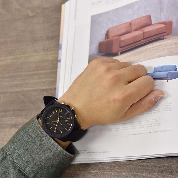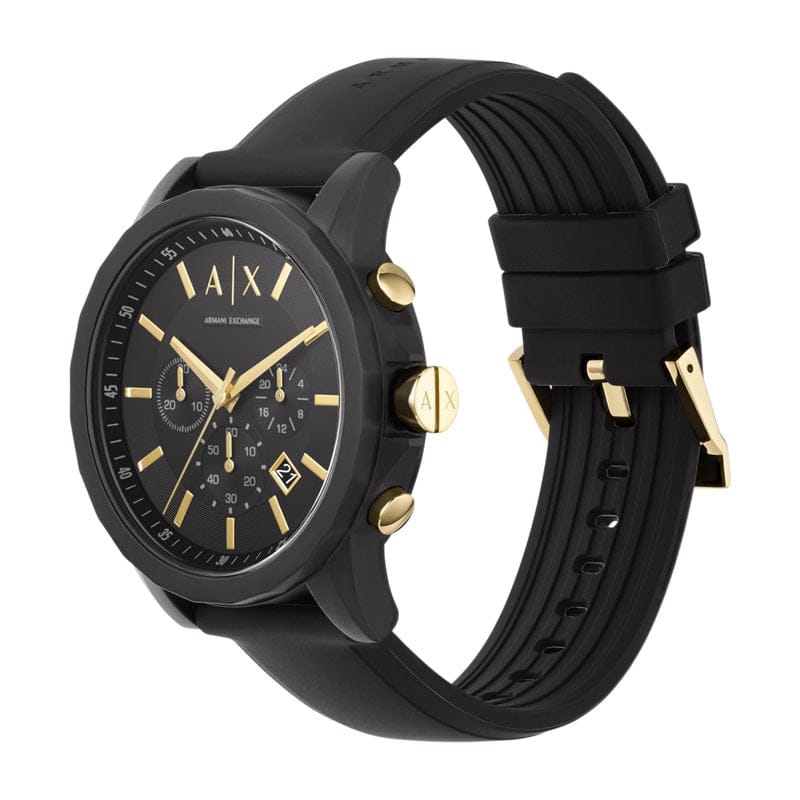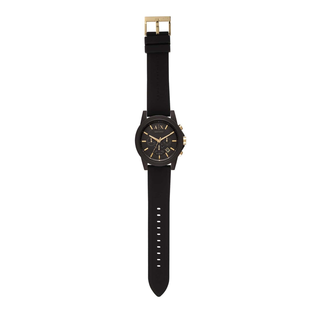 Embrace luxury and sophistication with the Armani AX7105 Black Silicone Chronograph Watch, a harmonious blend of modern style, comfort, and impeccable craftsmanship. This exquisite timepiece is designed for the discerning individual who values both punctuality and fashion. At its core is a sleek black silicone band, offering a smooth and durable feel, ensuring all-day comfort without compromising on its chic, modern allure.