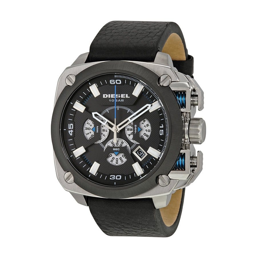 Diesel BAMF Chronograph Black Dial Black Leather Strap Watch For Men - DZ7345
