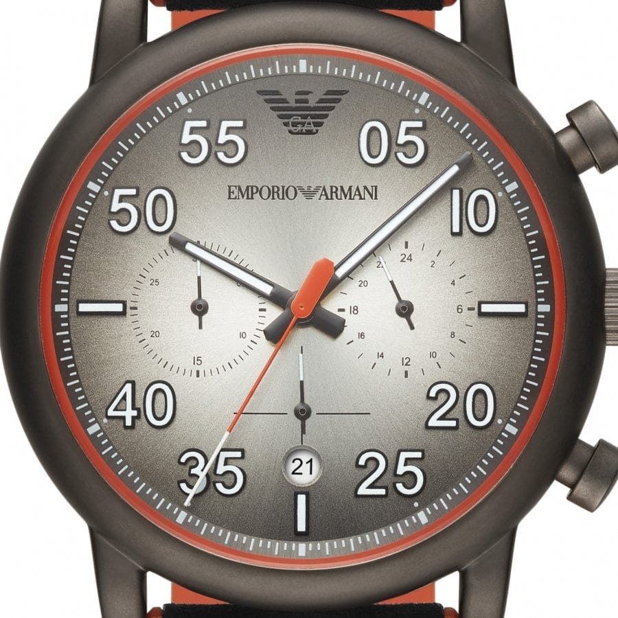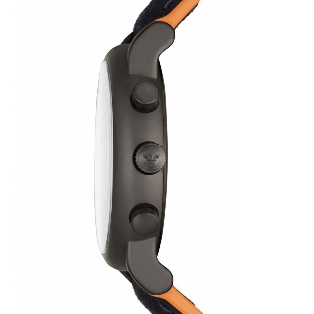Emporio Armani Chronograph Quartz Grey Dial Black Leather Strap Watch For Men - AR11174