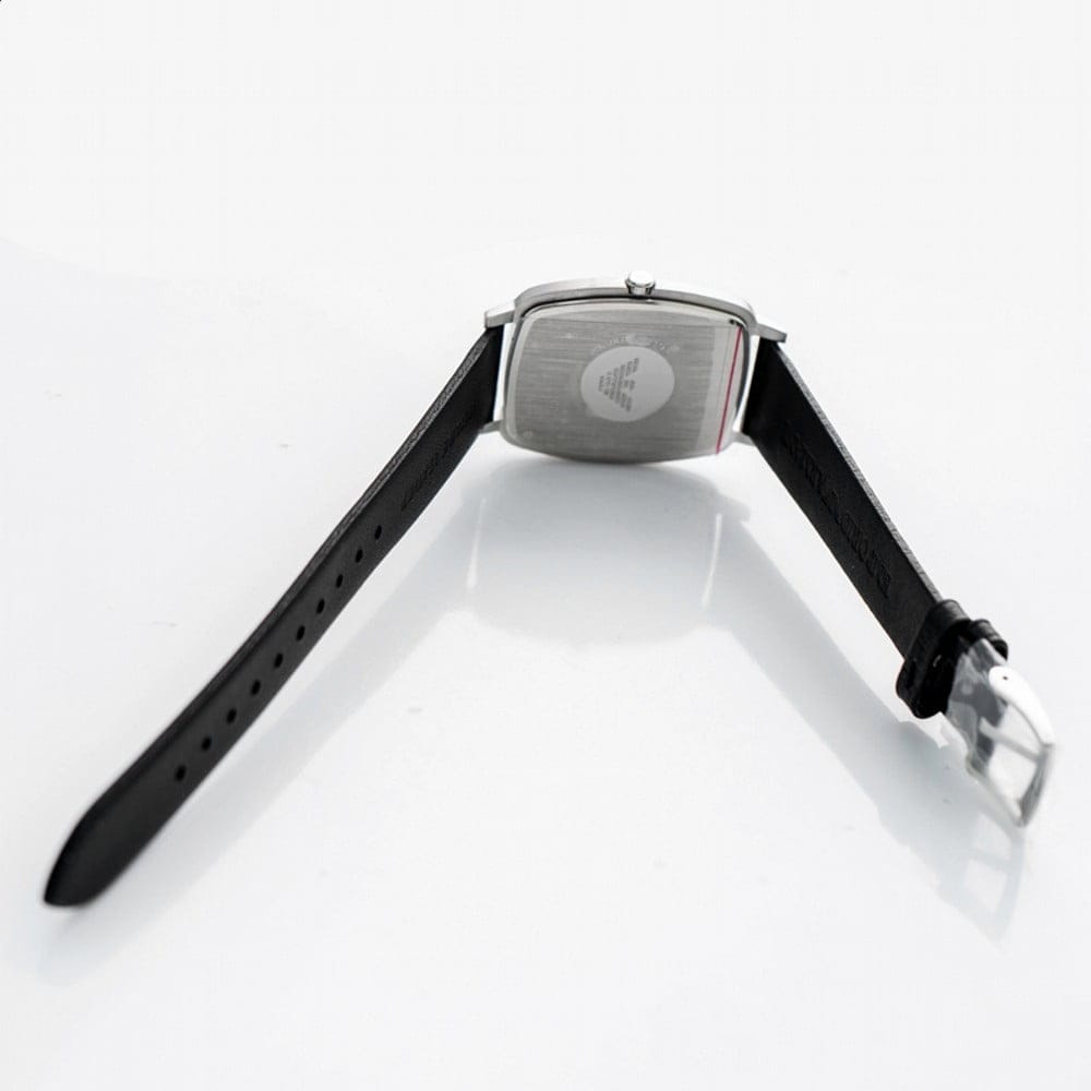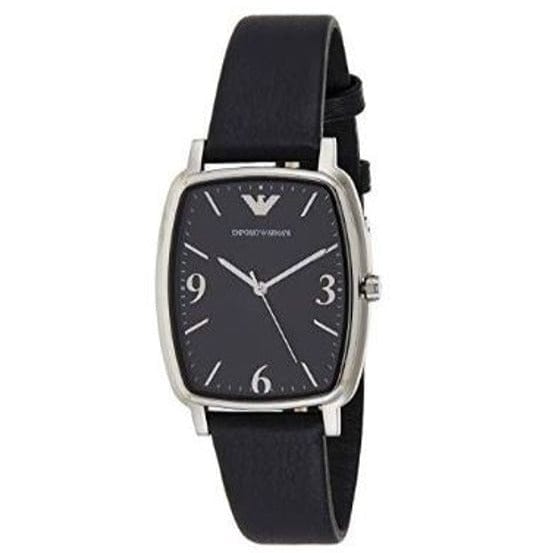 Product Features: Brand: Emporio Armani Watch Shape: Rectangle Dial Case Diameter Size: 37 mm Band Material: Leather Display Type: Analog Targeted Group: Women Type: Casual Watch Model Number: AR2490 Product Weight: 227 g Water Resistant: Yes Water Resistant Depth: 30 Meters Dial Window Material: Clasp: Buckle Band Color: Black Case Material: Stainless Steel Case Thickness: 7 mm Movement Type: Quartz Band Width: 14 mm Calendar: No Dial Color: Black