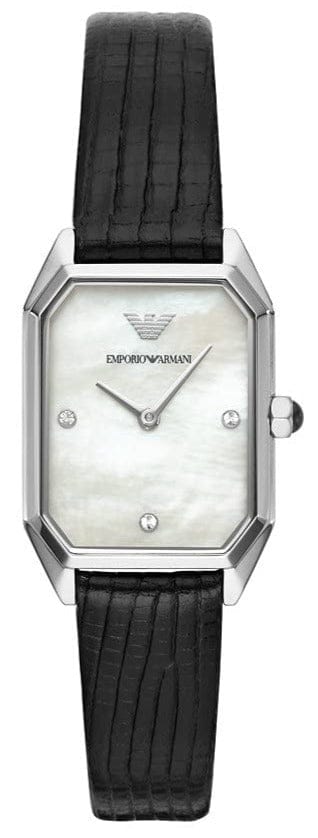 Emporio Armani Gioia Analog Mother of Pearl Dial Black Leather Strap Watch For Women - AR11148