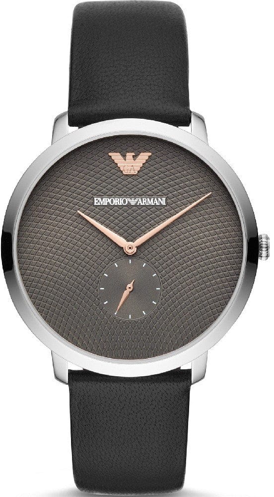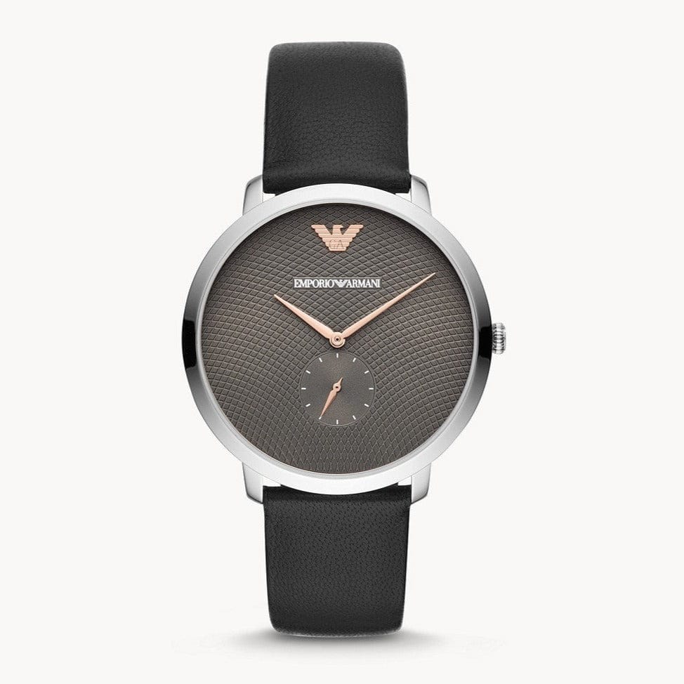 Emporio Armani Modern Slim Quartz Grey Dial Black Leather Strap Watch For Men - AR11162