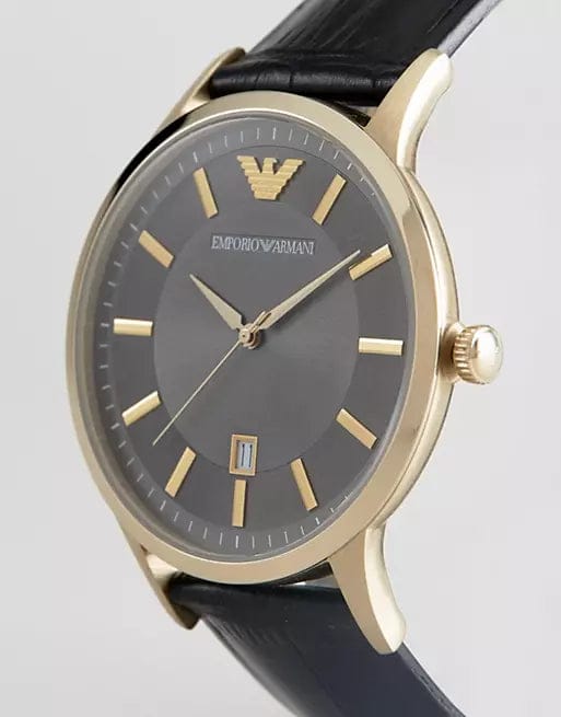 Emporio Armani Renato Quartz Grey Dial Black Leather Strap Watch For Men - AR11049