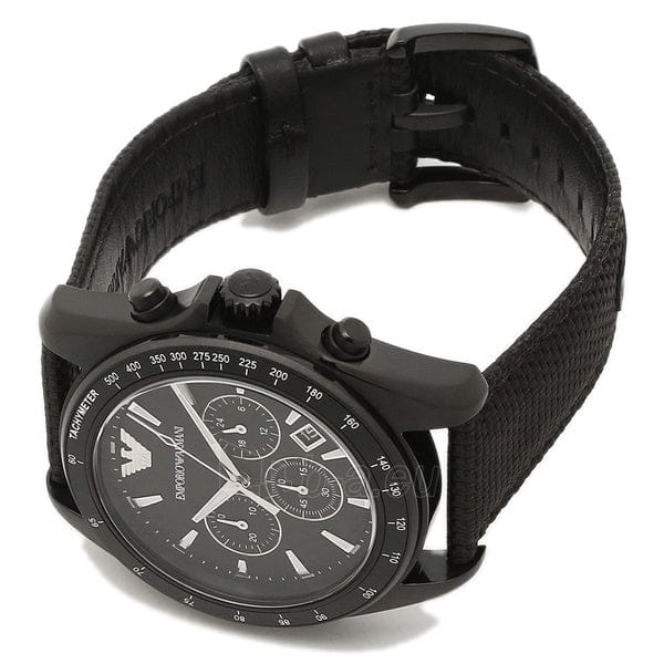 Emporio Armani Sigma Chronograph Black Dial Black Leather Strap Watch For Men - AR6131