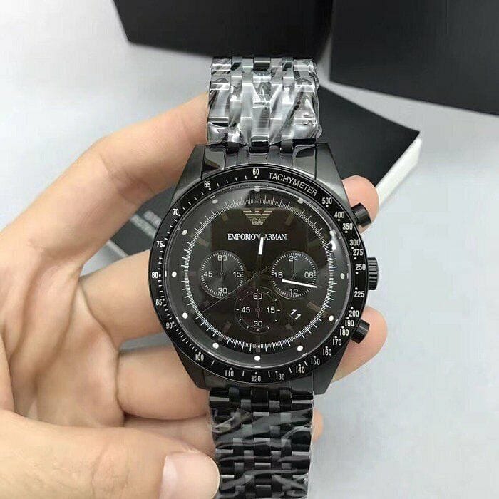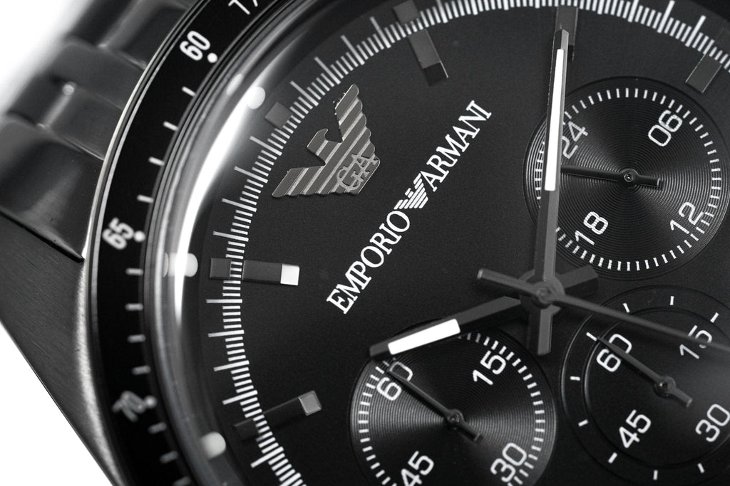Emporio Armani Tazio Chronograph Black Dial Black Steel Strap Watch For Men - AR5989