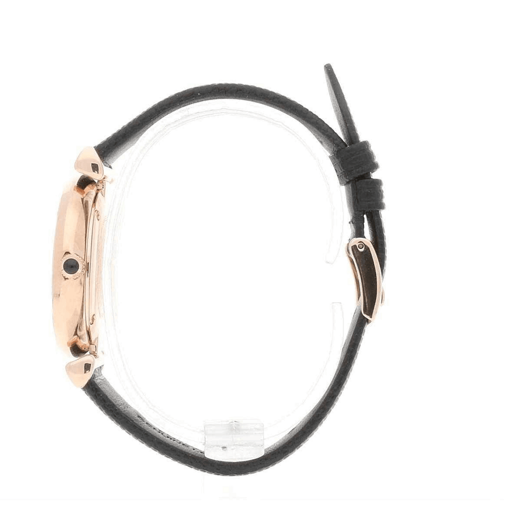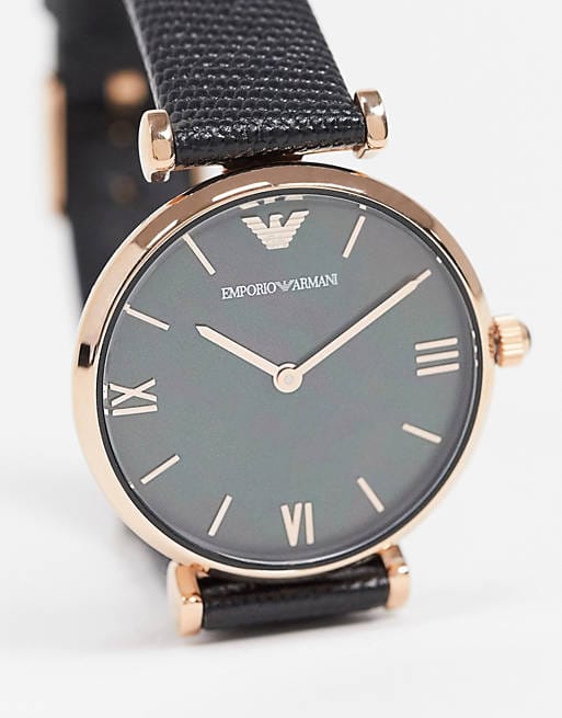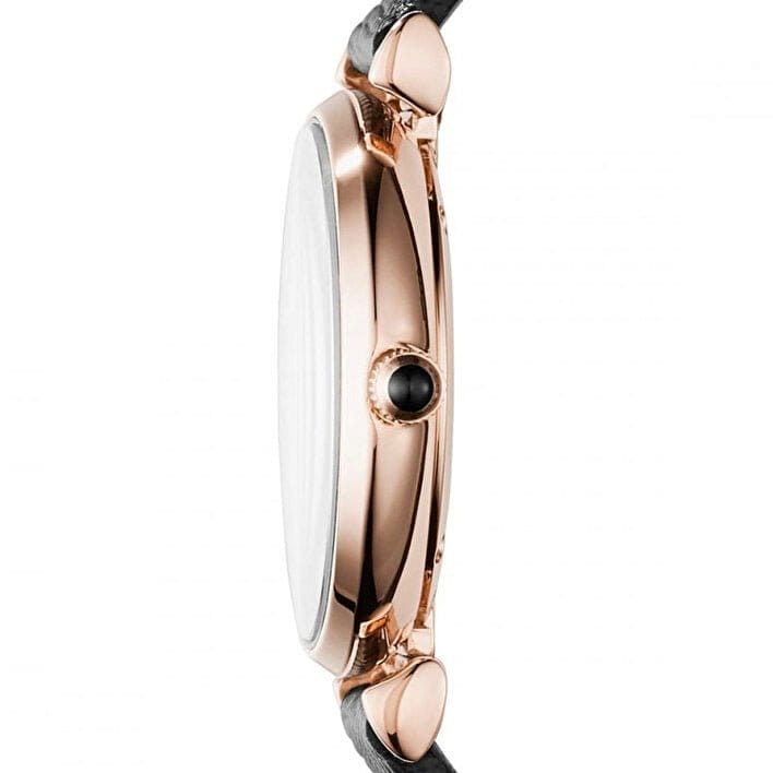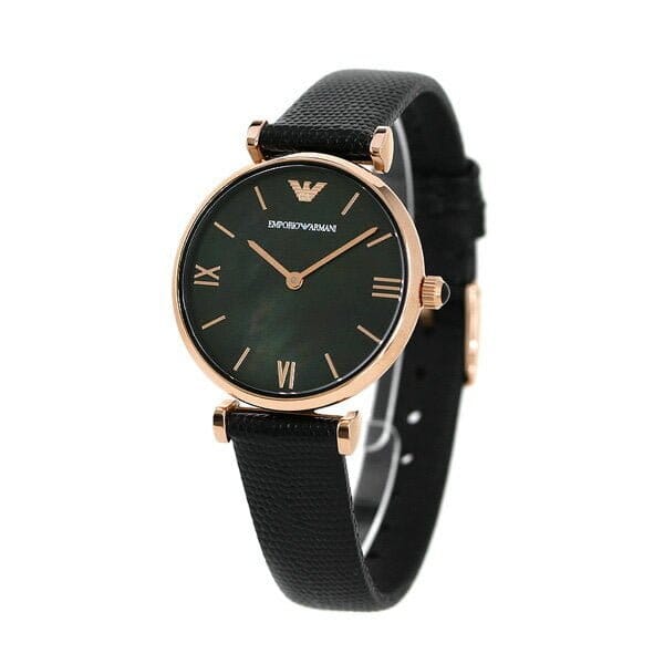 Emporio Armani Gianni T Bar Black Mother of Pearl Dial Black Leather Strap Watch For Women - AR11060