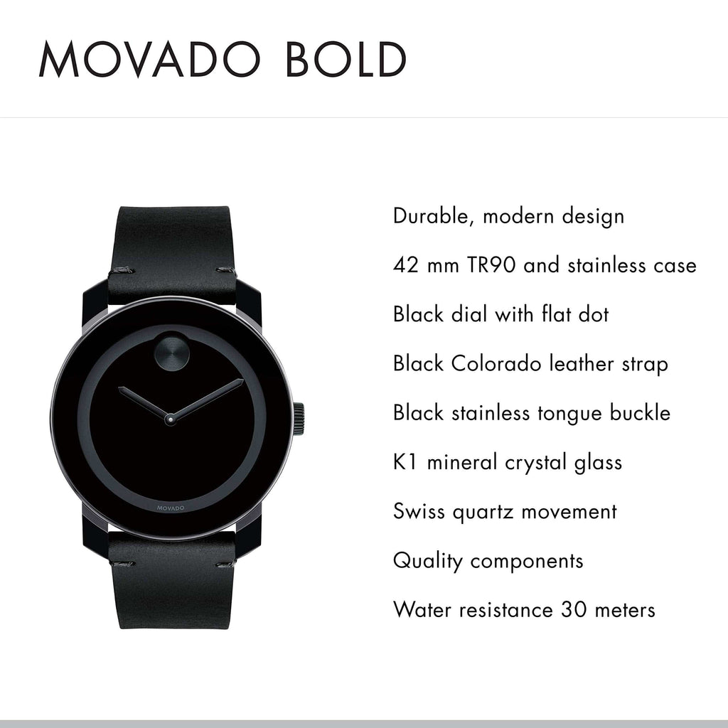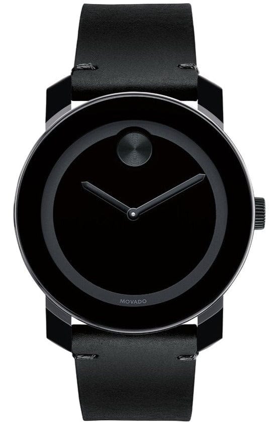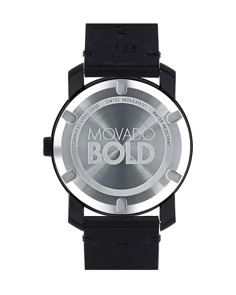 Movado Bold Black Dial Black Leather Strap Watch For Men - 3600306