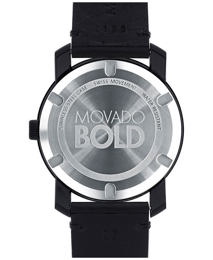 Movado Bold TR90 Black Dial Black Leather Strap Watch For Men - 3600307