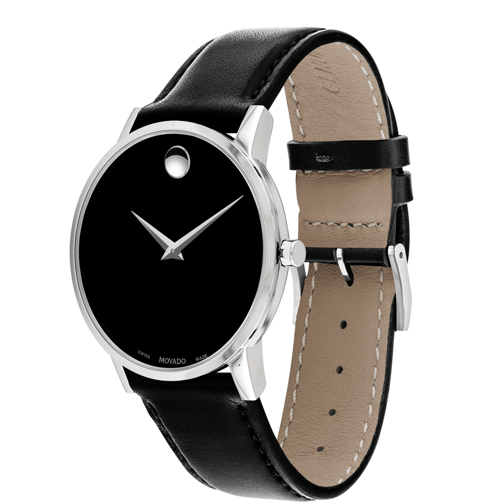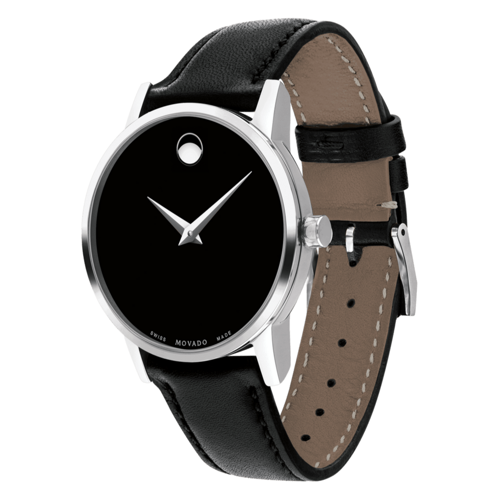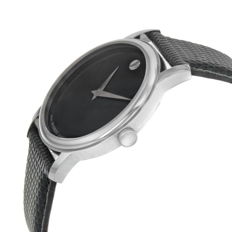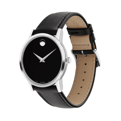 Movado Museum Black Dial Black Leather Strap Watch For Men - 2100002