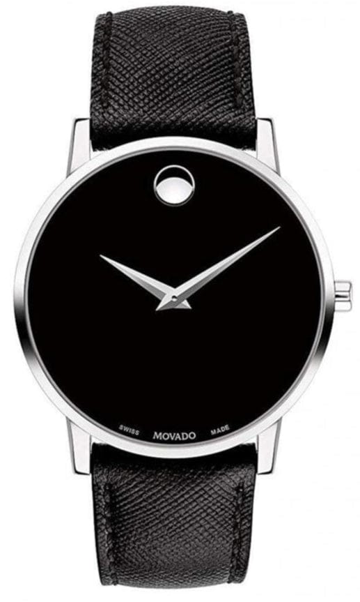 Movado Museum Classic Black Dial Black Leather Strap Watch for Men - 0607194