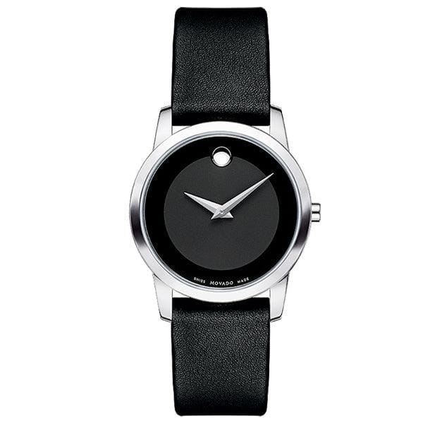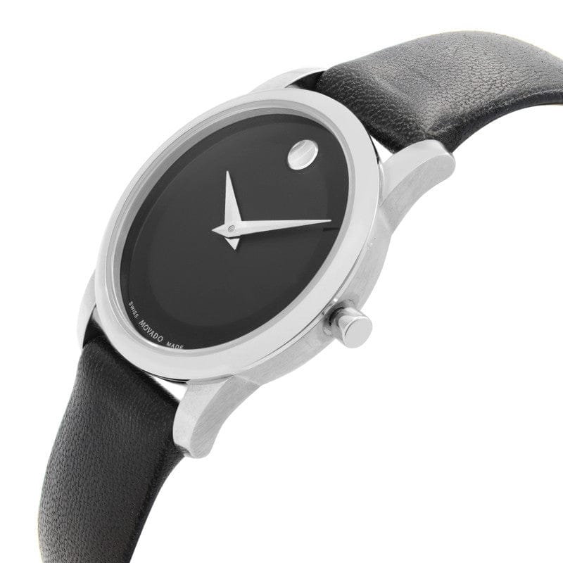 Movado Museum Classic Black Dial Black Leather Strap Watch For Women - 0606503