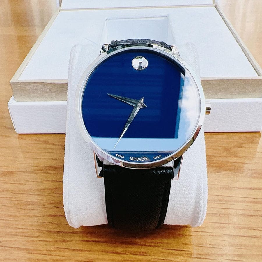 Movado Museum Classic Blue Dial Black Leather Strap Watch for Men - 0607197