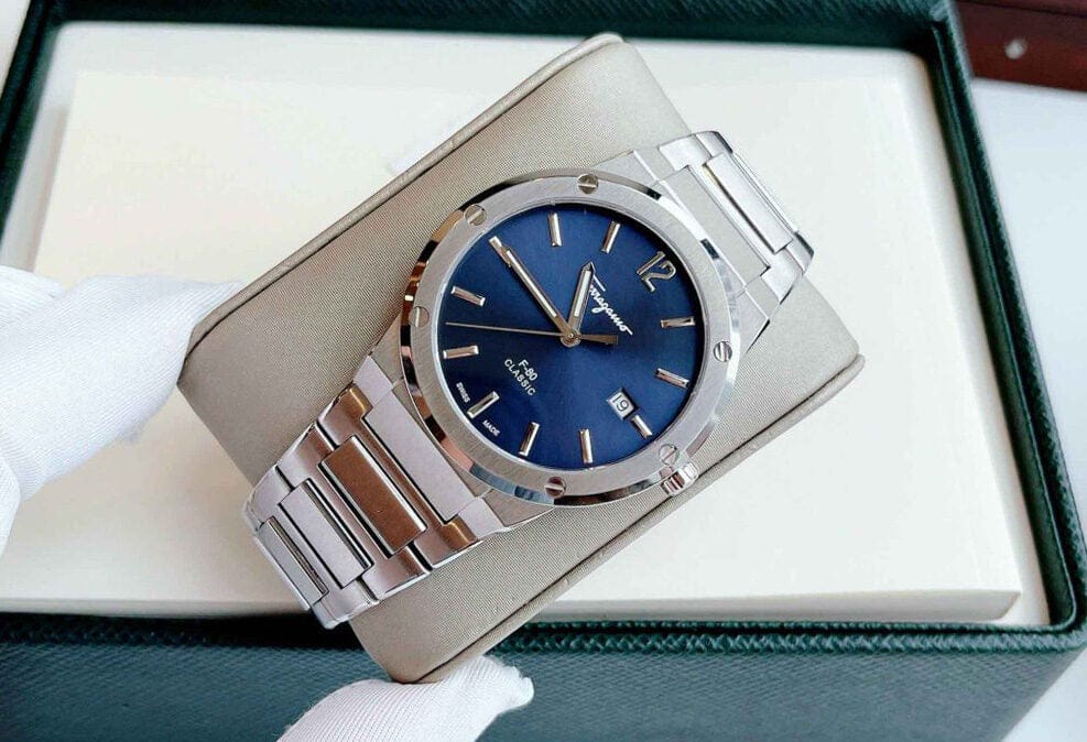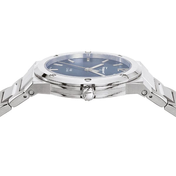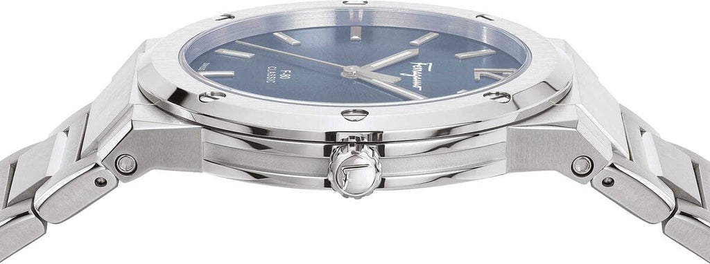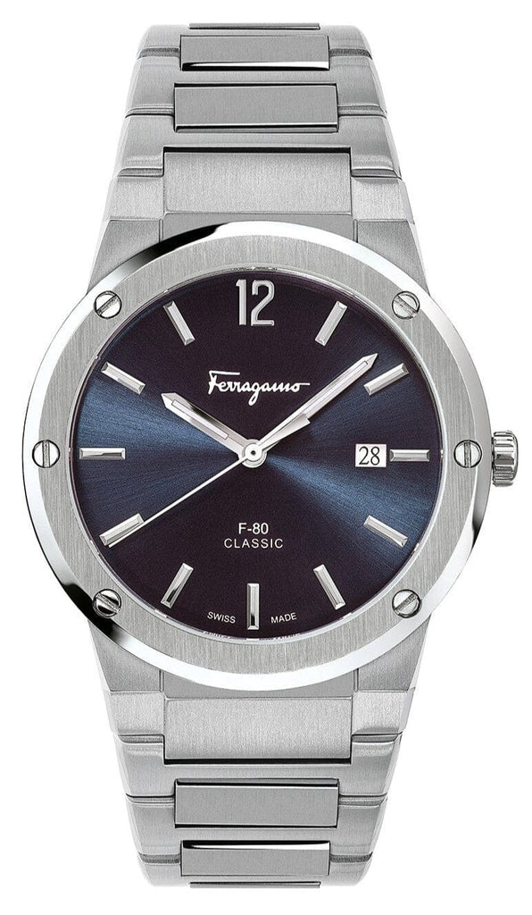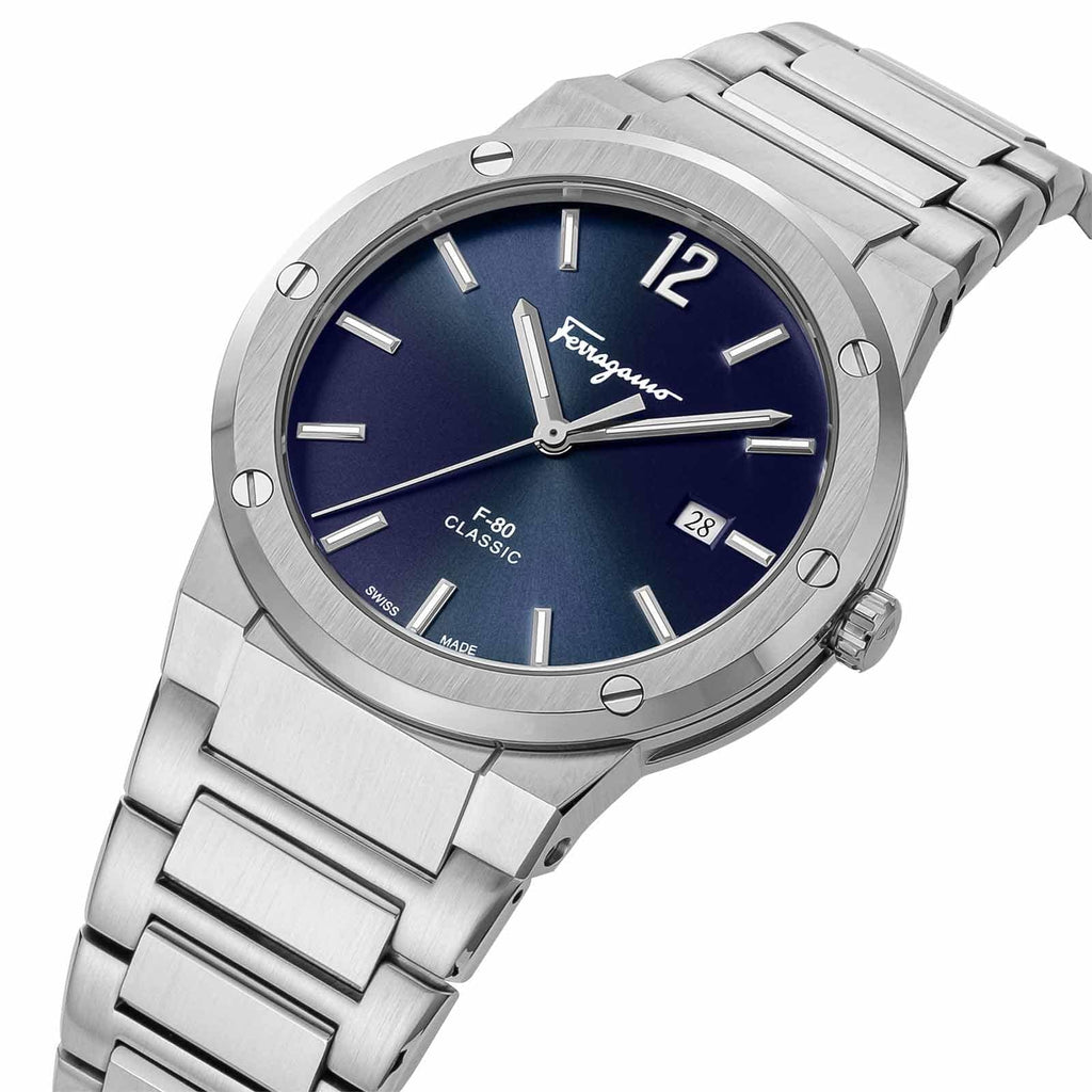 Salvatore Ferragamo F-80 Classic Blue Dial Silver Steel Strap Watch for Men - SFDT01320