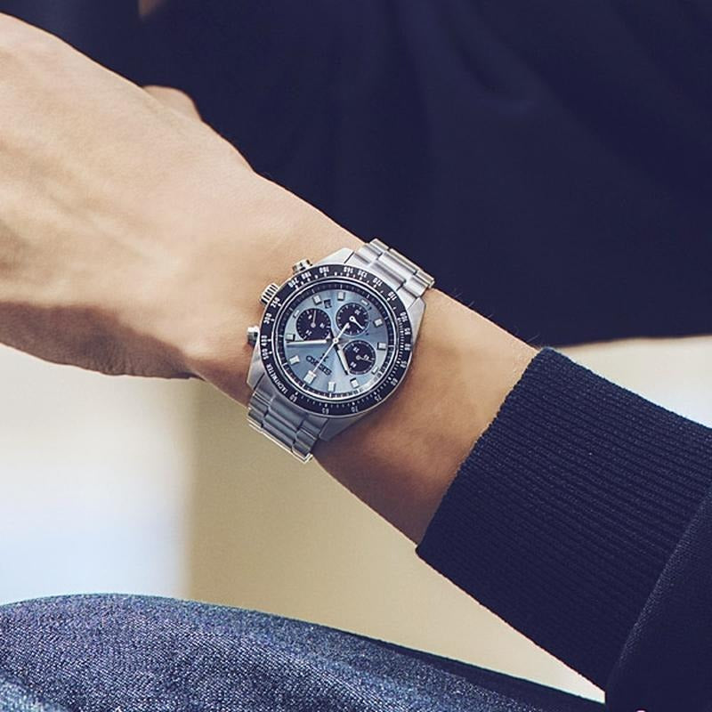 Seiko Prospex Speedtimer 41.4 Solar Chronograph Blue Dial Silver Steel Strap Watch for Men - SSC935
