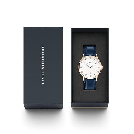 Daniel Wellington Dapper Somerset White Dial Blue Leather Strap Watch For Men - DW00100191