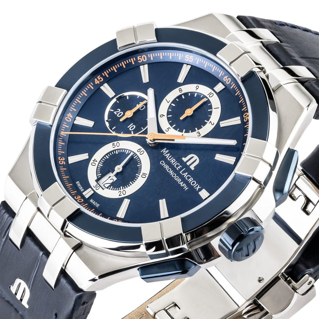 Maurice Lacroix Aikon Chronograph Blue Dial Blue Leather Strap Watch For Men - AI1018-SS001-432-4