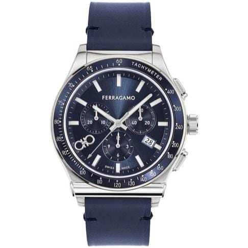 Salvatore Ferragamo 1927 Chrono Analog Blue Dial Blue Leather Strap Watch for Men - SFKZ00223