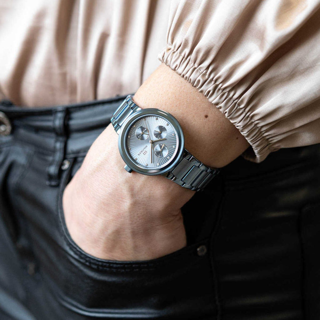 This Tommy Hilfiger watch impresses with its classic design. The case is made of stainless steel and has a diameter of 36 mm. The height of the case is 8 mm. The glass is mineral and the crown is a pull crown. The watch is water resistant to 3 ATM.