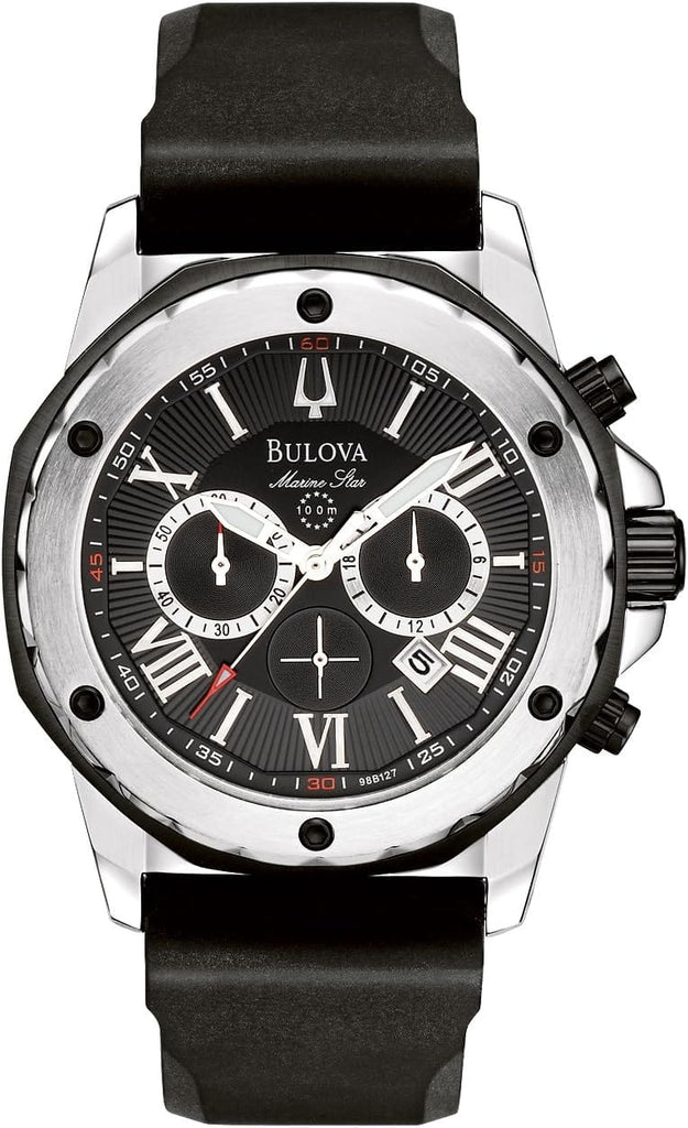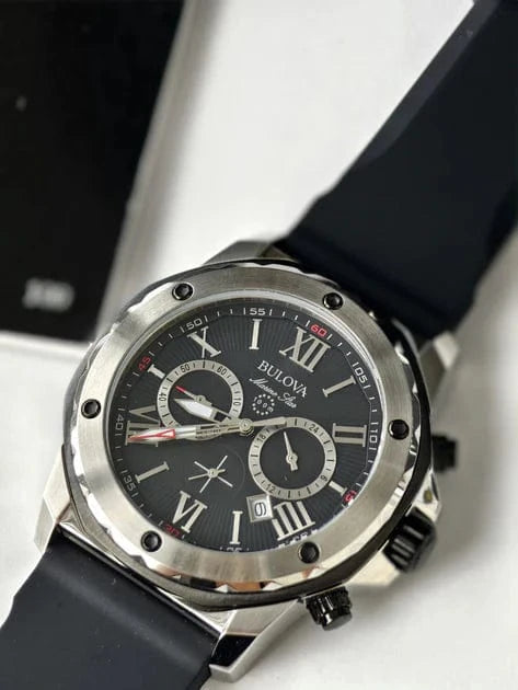 Bulova Marine Star Chronograph Black Dial Black Rubber Strap Watch for Men - 98B127
