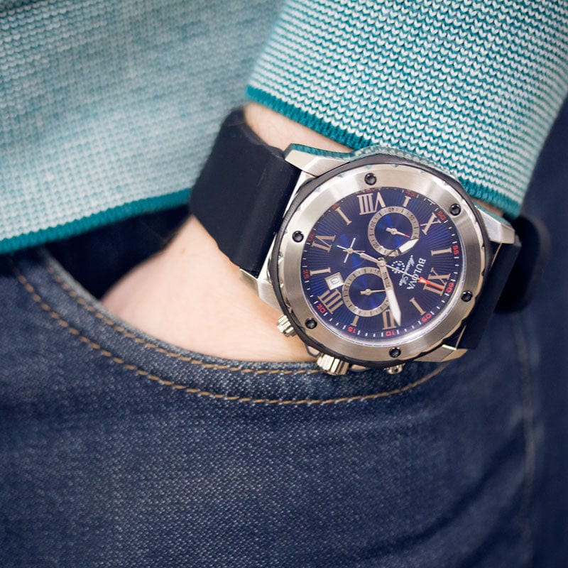 From Bulova's Men's Marine Star Collection, live and play in maritime watches that feature bold accents, iconic patterns and innovative materials inspired by the sea.