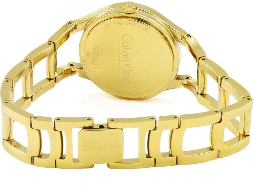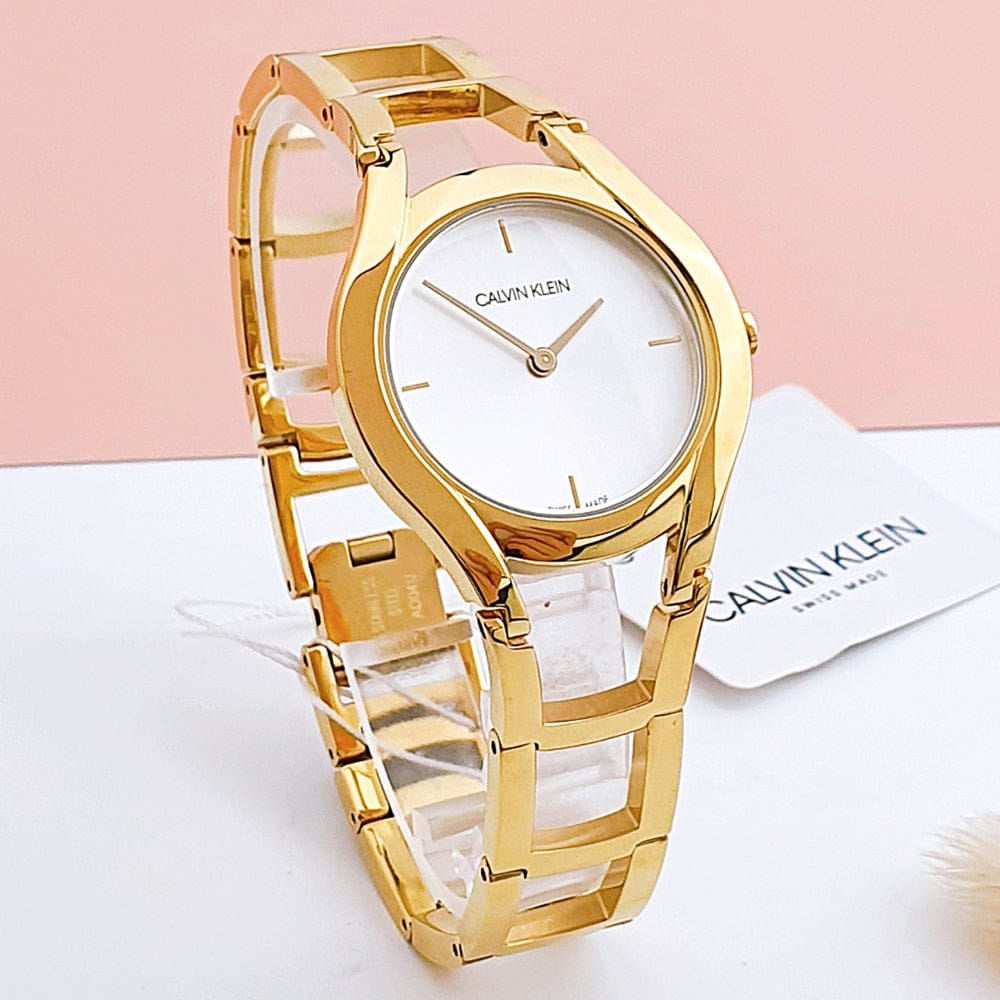 Calvin Klein Class White Dial Gold Steel Strap Watch for Women - K6R23526