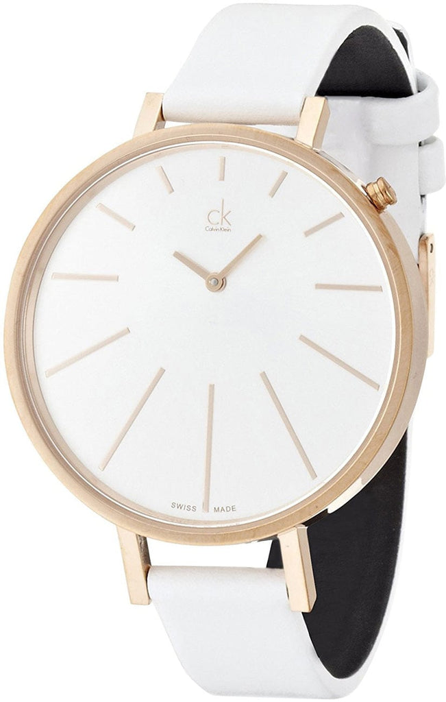 Calvin Klein Equal Silver Dial White Leather Strap Watch for Women - K3E236L6