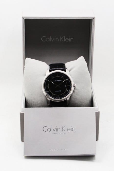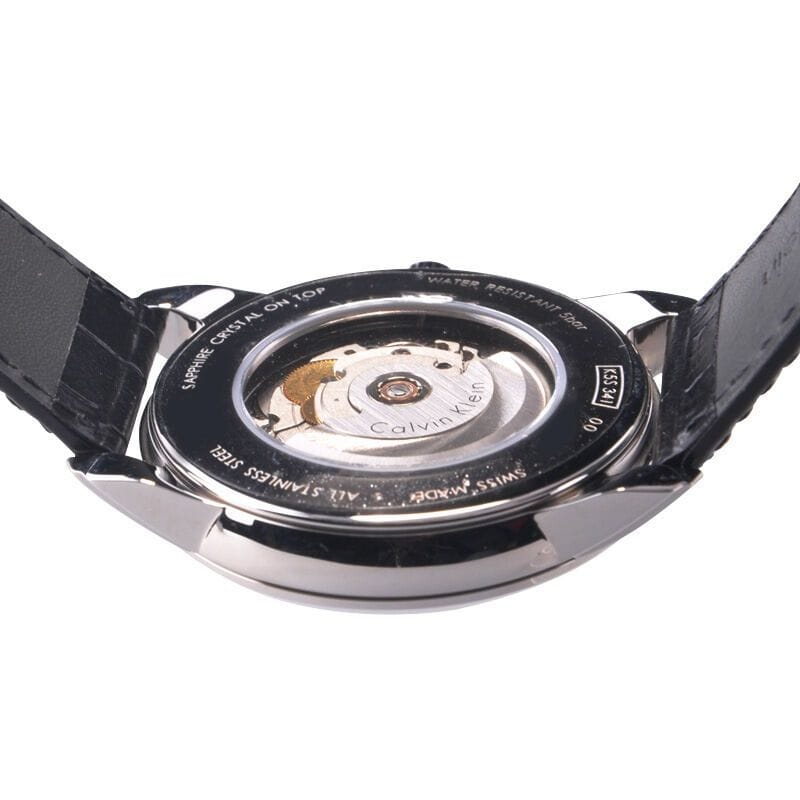 Calvin Klein Infinity Automatic Black Dial Black Leather Strap Watch for Men - K5S341C1
