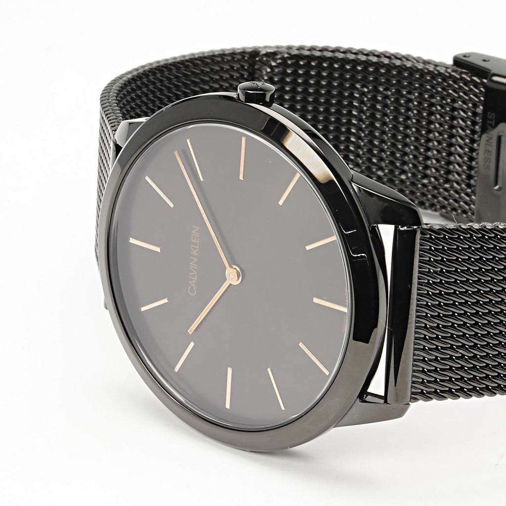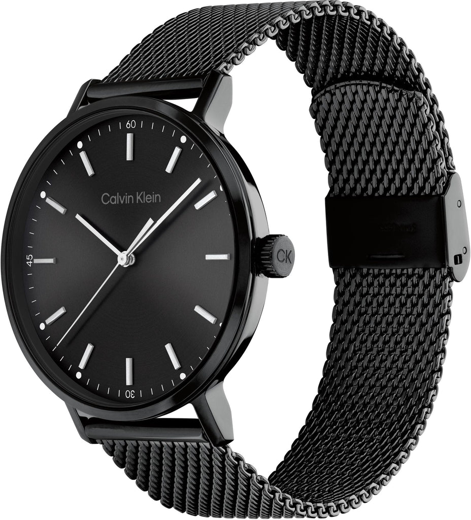 Calvin Klein Minimal Black Dial Black Mesh Bracelet Watch for Men - K3M21421