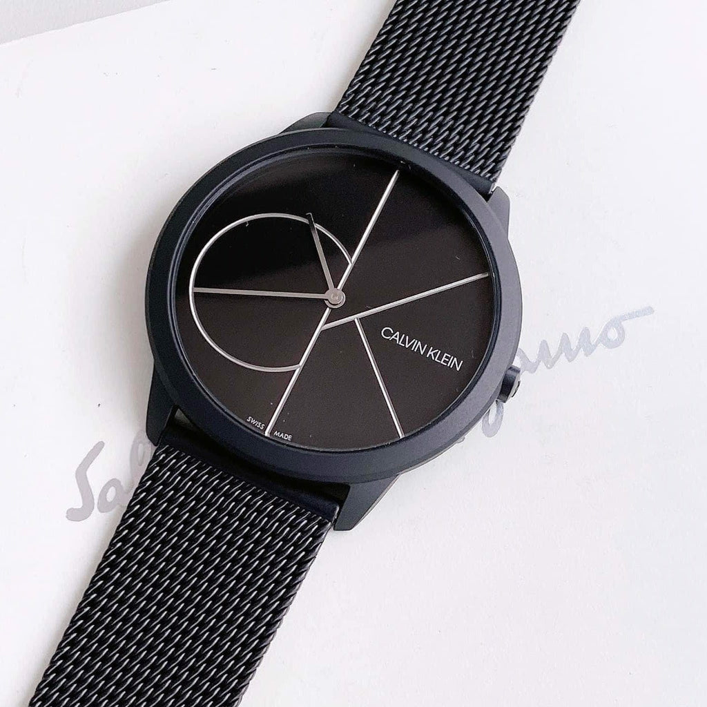 Calvin Klein Minimal Black Dial Black Mesh Bracelet Watch for Men - K3M5145X