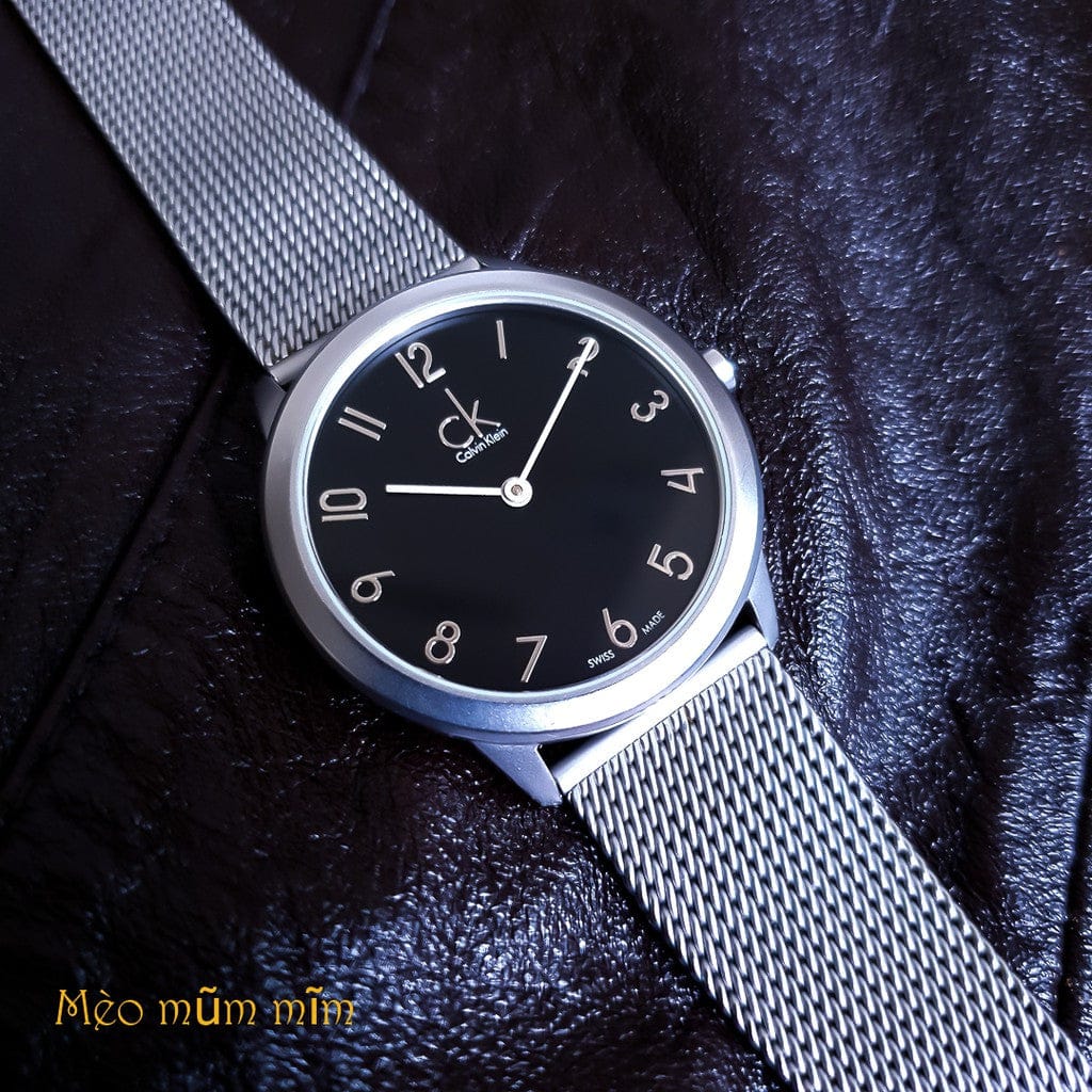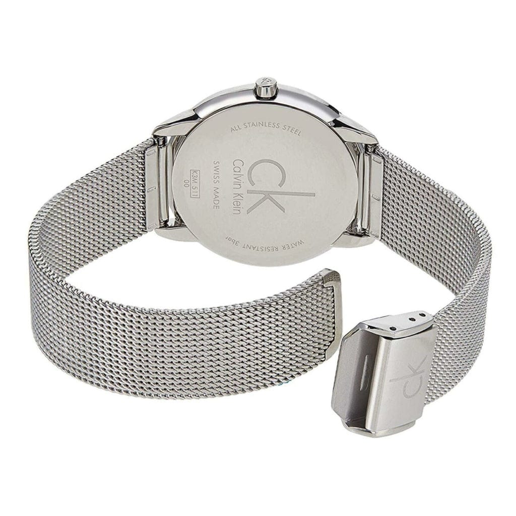 Calvin Klein Minimal Black Dial Silver Mesh Bracelet Watch for Men - K3M51151